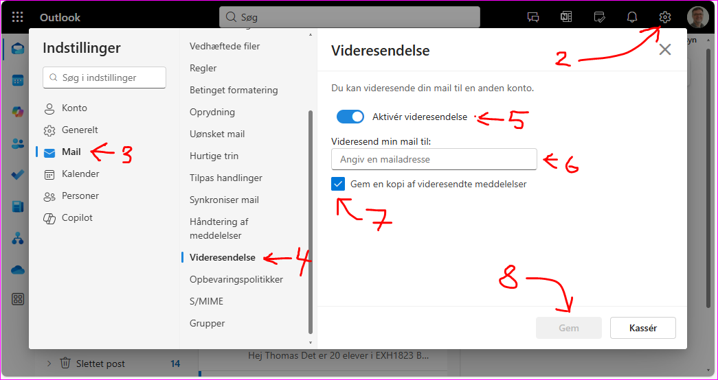 - Sæt flueben i Gem en kopi af videresendte meddelser